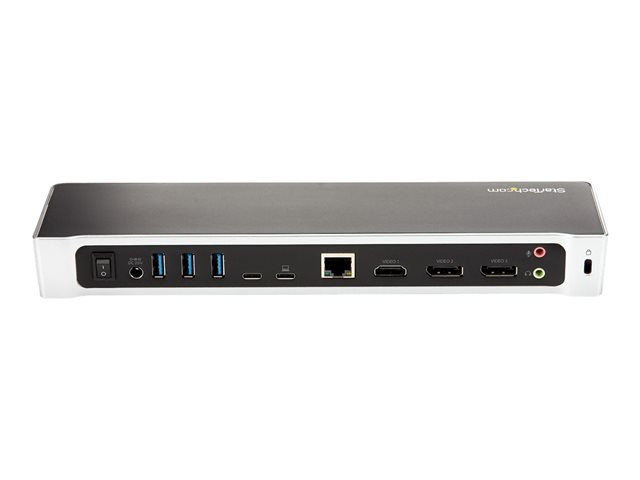 Repoussant les limites de la productivité, cette station d'accueil USB-C , conforme aux exigences TAA pour ordinateurs portables Mac et Windows , prend en charge trois écrans 4K : une première sur le marché. La station d'accueil USB Type-C génère une puissance de charge de 60 W et intègre cinq ports USB 3.0 pour connecter vos périphériques. C'est l'accessoire parfait pour votre Chromebook Pixel XPS 15 de Dell ou pour tout autre ordinateur portable compatible USB-C. La station d'accueil se connecte aux ordinateurs portables équipés de ports USB 3.0 via un port USB-A (à l'aide d'un câble USB-C vers USB-A comme le USB315AC1M, vendu séparément). Remarque : la charge de votre ordinateur portable par Power Delivery n'est pas disponible par USB-A et seul le double affichage est pris en charge.