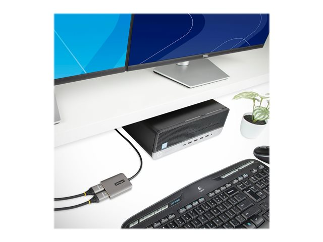 StarTech.com DP to Dual HDMI MST HUB, Dual HDMI 4K 60Hz, DisplayPort Multi Monitor Adapter with 1ft (30cm) Cable, DP 1.4 Multi Stream Transport Hub, DSC | HBR3, DP to 2x HDMI Ports - DP to HDMI Splitter (MST14DP122HD) - Adaptateur vidéo - DisplayPort mâle pour HDMI femelle - gris