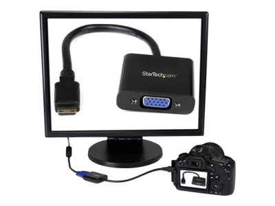 L'adaptateur/convertisseur Mini HDMI vers VGA MNHD2VGAE2 convertit activement le signal vidéo Mini HDMI de votre caméra numérique ou votre tablette pour le diffuser sur un projecteur ou écran VGA. L'adaptateur prend en charge des résolutions totales 1080p, ce qui le rend pratique pour les applications nécessitant la haute définition.