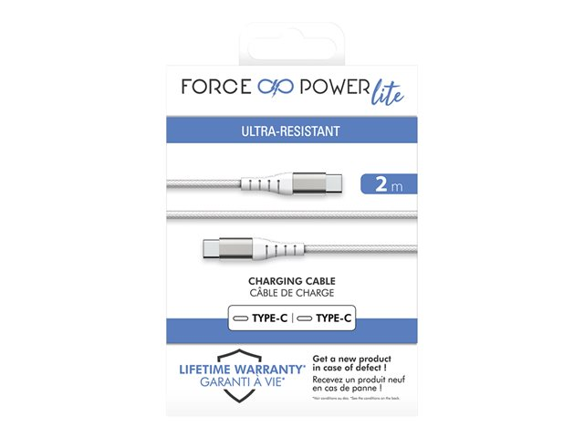 Force Power - Câble USB - 24 pin USB-C (M) pour 24 pin USB-C (M) - 3 A - 2 m - blanc