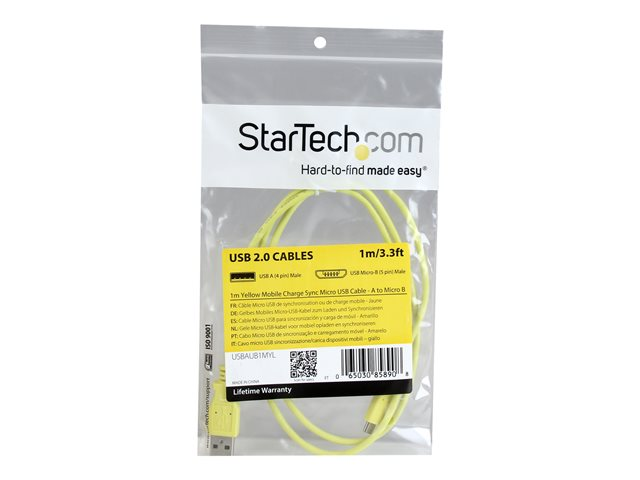 Le câble Micro USB 1 m jaune USBAUB1MYL est idéal pour ajouter une touche de couleur dans votre vie et constitue une solution fiable de chargement et de synchronisation de vos appareils mobiles Micro USB. De plus, sa conception slim permet de le brancher dans vos appareils sans avoir à les sortir de leur étui à chaque chargement ou synchronisation.