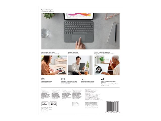 Logitech Combo Touch - Clavier et étui - avec trackpad - rétroéclairé - Apple Smart connector - QWERTY - Espagnol - gris oxford - pour Apple 10.9-inch iPad Air (4ème génération, 5ème génération)