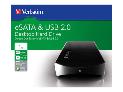 Verbatim External Hard Drive - Disque dur - 1 To - externe (de bureau) - 3.5" - USB 2.0 / eSATA - Noir acier 47526