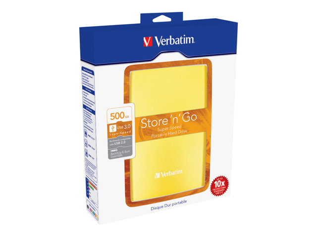 Verbatim Store 'n' Go Portable - Disque dur - 500 Go - externe (portable) - USB 3.0 - 5400 tours/min - Jaune ensoleillé 53027