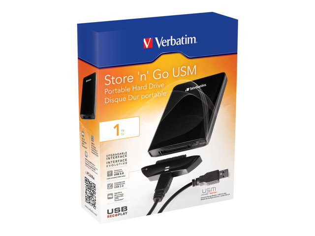Le disque dur portable Store 'n' Go USM de Verbatim propose une solution de stockage flexible et évolutive. Grâce à ses nombreuses possibilités de branchement (câbles d'interface USB 3.0, FireWire800, eSATA ou Thunderbolt, ou encore via l'interface SATA), le disque dur portable se révèle être une solution de stockage à l'épreuve du temps.
