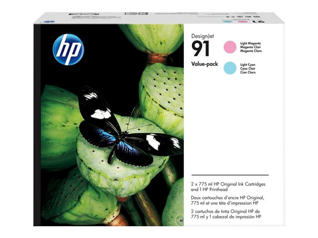HP 91 Value Pack - Pack de 3 - 775 ml - magenta clair, cyan clair - originale - DesignJet - tête d'impression avec cartouche - pour DesignJet Z6100, Z6100ps