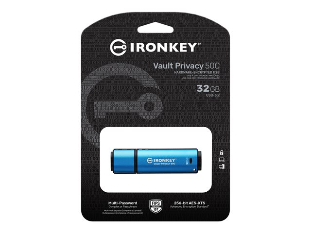 Kingston IronKey Vault Privacy 50C - Clé USB - chiffré - 32 Go - USB-C 3.2 Gen 1 - Conformité TAA