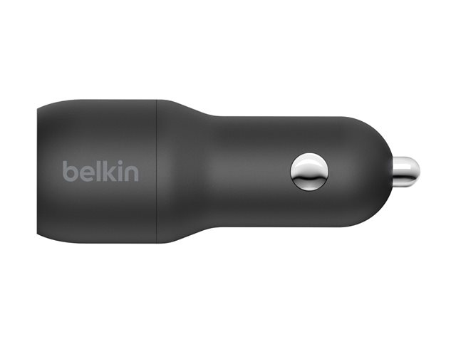 Belkin BOOST CHARGE Double chargeur - Adaptateur d'alimentation pour voiture - 24 Watt - 4.8 A - 2 connecteurs de sortie (USB) - sur le câble : Lightning - noir