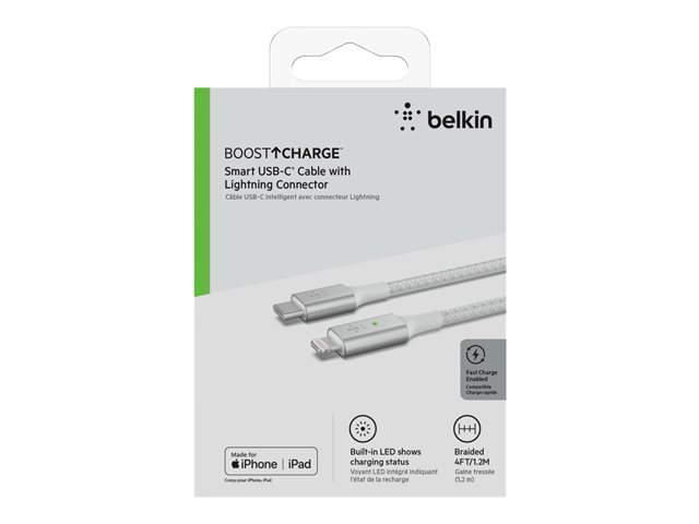 Belkin BOOST CHARGE Smart - Câble Lightning - 24 pin USB-C mâle pour Lightning mâle - 1.2 m - blanc - Prise en charge de Power Delivery