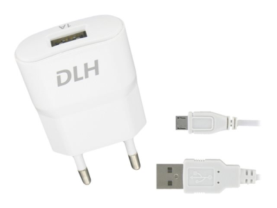 DLH DY-AU1870 - Adaptateur secteur - 5 Watt - 1 A (USB) - sur le câble : Micro-USB - blanc