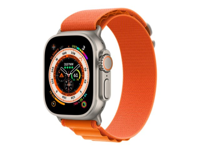 Apple Watch Ultra - 49 mm - titane - montre intelligente avec Boucle Alpine - textile - de couleur orange - taille du bracelet : M - 32 Go - Wi-Fi, LTE, UWB, Bluetooth - 4G - 61.3 g