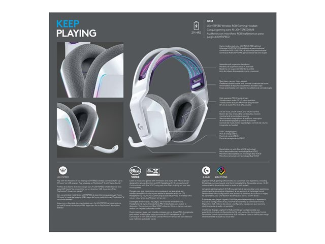 Logitech G G733 LIGHTSPEED Wireless RGB Gaming Headset - Micro-casque - circum-aural - 2,4 GHz - sans fil - blanc