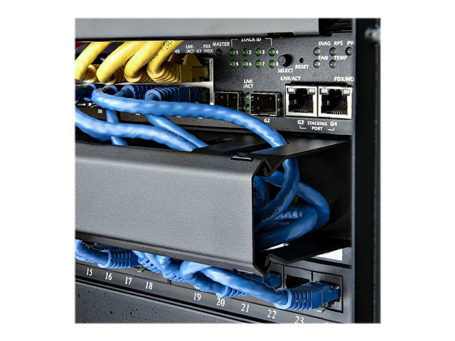 En acier de qualité supérieure, le gestionnaire de câbles constitue une solution durable pour votre salle de serveurs ou votre armoire de câblage. Complet, ce gestionnaire horizontal de câbles s'installe facilement grâce à deux ensembles de vis pour rack (M5 et M6).