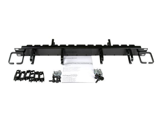 StarTech.com Server Rack Cable Management - 1U - Finger Ducts / D-Ring Hooks - Panneau d'agencement de câbles de rack avec couvercle - noir - 1U - 19" - pour P/N: RKCONS1708K, RKCONS1716K