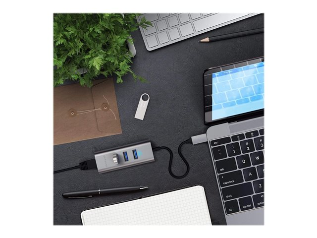 Satechi ST-TC2N1USB31AM - Concentrateur (hub) - 3 x SuperSpeed USB 3.0 + 1 x 10/100/1000 - de bureau ST-TC2N1USB31AM