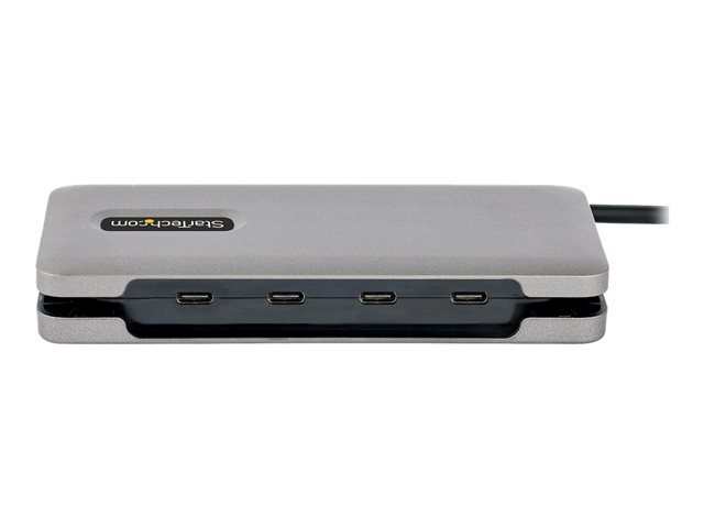 Ce hub USB-C à 4 ports avec passage USB Power Delivery (PD) en option, étend la connectivité d'un ordinateur portable USB-C. Ce hub dispose de quatre ports USB 3.2 Gen 2 (10Gbps) Type-C, qui prennent en charge les périphériques USB à large bande passante. Connectez le câble USB-C attaché à un port USB Type-C ou Thunderbolt 3/4, situé sur l'ordinateur hôte, pour permettre la connexion rapide de jusqu'à 4 périphériques. Ce hub USB-C léger peut fonctionner avec une alimentation par bus. Vous pouvez également connecter un adaptateur d'alimentation USB-C (non inclus) au port USB-C PD désigné pour charger un ordinateur portable.