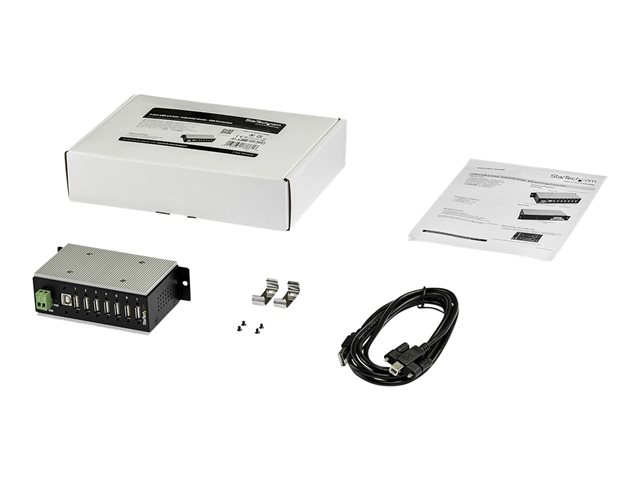 StarTech.com Multiprise USB 2.0 industrielle à 7 ports avec protection électrostatique (ESD) 15 kV (HB20A7AME) - Concentrateur (hub) - 7 x USB 2.0 - Montage sur rail DIN - Tension CC - Conformité TAA - pour P/N: ITB20D3250 HB20A7AME