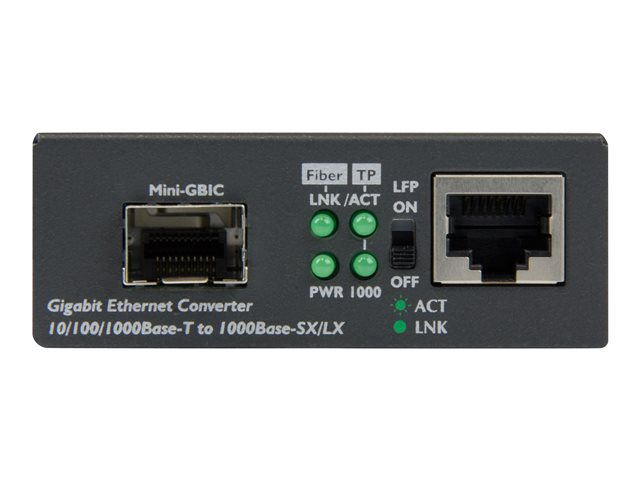 StarTech.com Convertisseur RJ45 Gigabit Ethernet sur Fibre Optique avec SFP Ouvert - 1000Mbps MonoMode/MultiMode - Convertisseur de média à fibre optique - 1GbE - 10Base-T, 1000Base-LX, 1000Base-SX, 100Base-TX, 1000Base-T - RJ-45 / SFP (mini-GBIC) - pour P/N: GLCLHSMDSTTA, GLCSXMMDST, GLCSXMMDSTT, GLCTEST, MASFP1GBTXST, SFP1GELXST MCM1110SFP