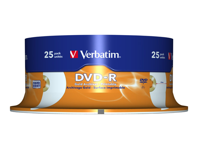 Verbatim Archival Grade - 25 x DVD-R - 4.7 Go 8x - surface imprimable par jet d'encre, surface imprimable avec photo - spindle